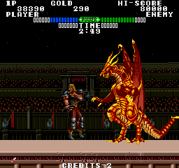 Barbarian on the old early 80s home computers. You've an attack button, a jump